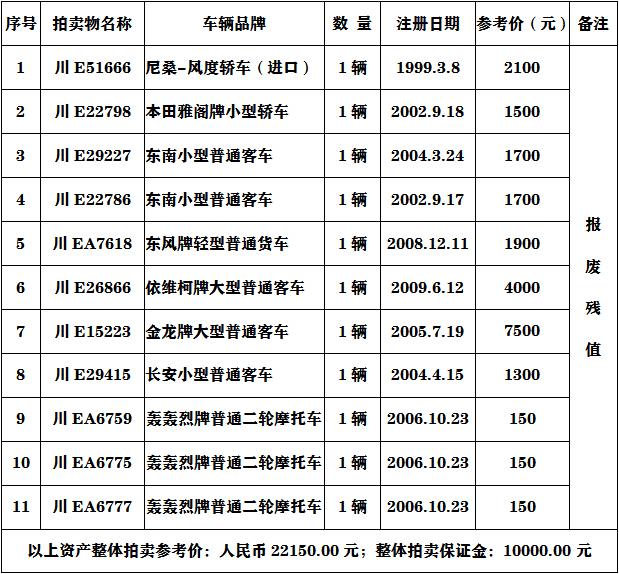 二、注意事項:參與報廢車輛的競買人必須具有收取報廢車輛的相關資質。